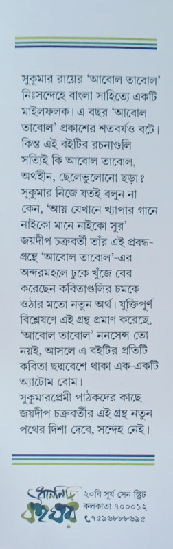 "মজার আড়ালে গভীর কথা বলায় অদ্বিতীয় তিনি। তিনি, সুকুমার রায় আমার প্রিয়তম সাহিত্যিকদের একজন। যখন কলেজে পড়ি, সেই সময়েই তাঁর প্রতি মুগ্ধতাবশত 'ক্রান্তদর্শী সুকুমার' নামে একটি প্রবন্ধ লিখেছিলাম। সে প্রবন্ধের আয়তন তেমন বিশাল কিছু ছিল না। মেরেকেটে লম্বা খাতার পৃষ্ঠা তিরিশেকের কাছাকাছি। সুকুমার রায়-এর 'আবোল তাবোল' কাব্যগ্রন্থটি (ছড়া সংকলন ইচ্ছে করেই বলি না আমি, লেখাগুলিকে নিছক ছেলে ভুলোনো ছড়া হিসেবে মানি না বলে) যে আদৌ 'ননসেন্স' নয়, এই সত্যপ্রতিষ্ঠাই ছিল সে প্রবন্ধ রচনার উদ্দেশ্য।"-----জয়দীপ চক্রবর্তী
