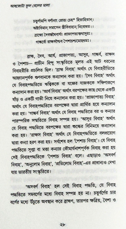 এই ছিল একেবারে শুরুর কথা। প্রাচীন মহিয়সী নানা মুনির বিবাহ সম্বন্ধিত বিষমধর্মী ধারণা। বিবাহ সংক্রান্ত সংস্কারের শুরুর দিক থেকে সূত্র ধরে ধীরে ধীরে সময়ের সঙ্গে সঙ্গে আধুনিক সময়ে বিবাহ সংক্রান্ত ধারণা চলমান হয়েছে এবং সময়ের সঙ্গে সঙ্গে সেই ধারণা পরিবর্তিত হয়েছে বা খানিকটা মূল ধারাকে বহমান করে এই সংস্কার চলে আসছে। প্রয়োজন মতো পরিবর্তিত হয়েছে রীতিনীতি, ধর্মীয় আদান-প্রদান, সমাজসংস্কার প্রভৃতি বিষয়। অন্যদিকে আধুনিক সময়ে শ্রী ভুবনেশ্বর মিত্র তাঁর 'হিন্দু বিবাহ সমালোচনা', দ্বিতীয় খণ্ডে বলেছেনে-