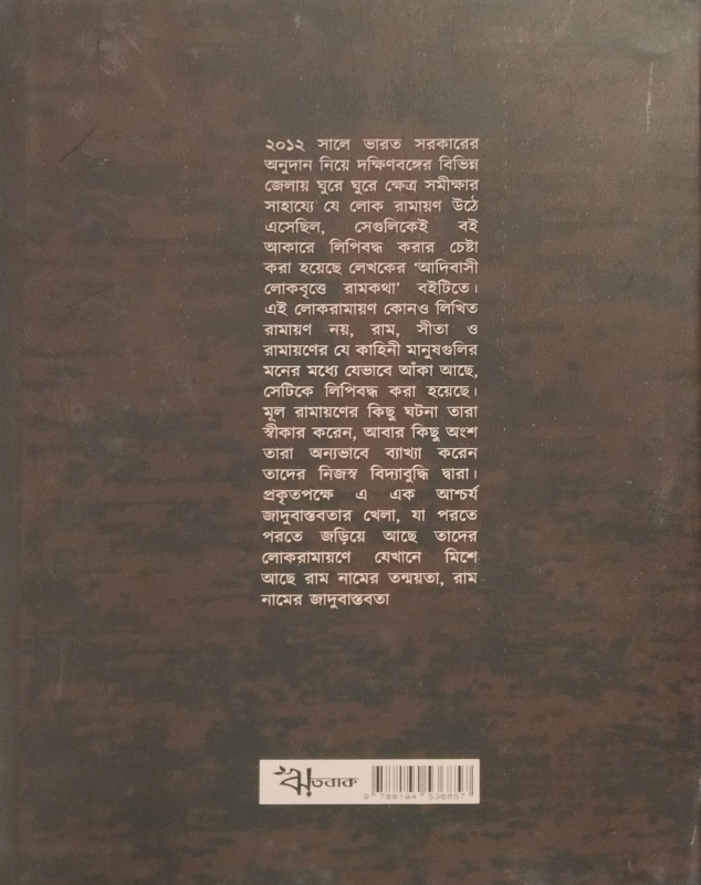 ২০১২ সালে ভারত সরকারের অনুদান নিয়ে দক্ষিণবঙ্গের বিভিন্ন জেলায় ঘুরে ঘুরে ক্ষেত্র সমীক্ষার সাহায্যে যে লোক রামায়ণ উঠে এসেছিল, সেগুলিকেই বই আকারে লিপিবদ্ধ করার চেষ্টা করা হয়েছে লেখকের 'আদিবাসী লোকবৃত্তে রামকথা' বইটিতে। এই লোকরামায়ণ কোনও লিখিত রামায়ণ নয়, রাম, সীতা ও রামায়ণের যে কাহিনী মানুষগুলির মনের মধ্যে যেভাবে আঁকা আছে, সেটিকে লিপিবদ্ধ করা হয়েছে। মূল রামায়ণের কিছু ঘটনা তারা স্বীকার করেন, আবার কিছু অংশ তারা অন্যভাবে ব্যাখ্যা করেন তাদের নিজস্ব বিদ্যাবুদ্ধি দ্বারা। প্রকৃতপক্ষে এ এক আশ্চর্য জাদুবাস্তবতার খেলা, যা পরতে পরতে জড়িয়ে আছে তাদের লোকরামায়ণে যেখানে মিশে আছে রাম নামের তন্ময়তা, রাম নামের জাদুবাস্তবতা।
