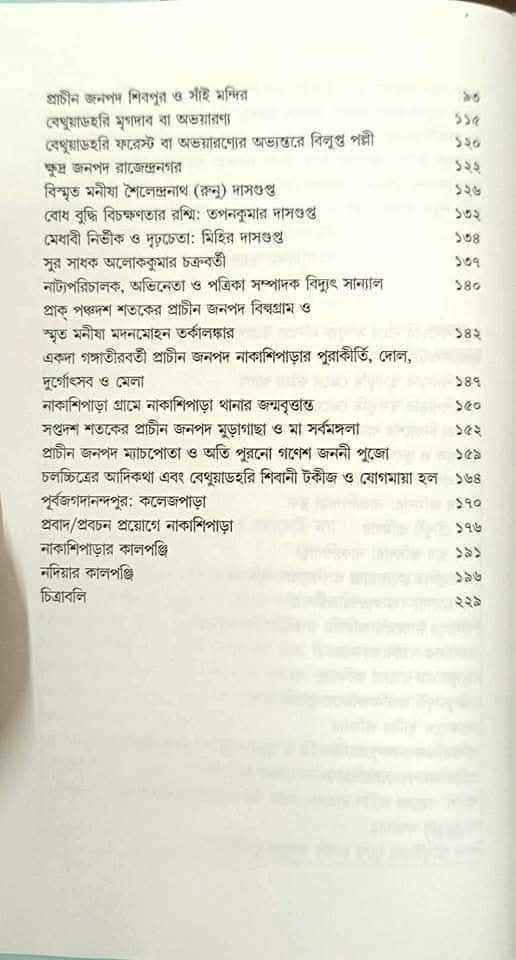 নদিয়ার অত্যন্ত বর্ধিষ্ণু, প্রাচীন, সংস্কৃতিসম্পন্ন এবং ঐতিহাসিক অঞ্চল নাকাশিপাড়া ভৌগলিকভাবে মুর্শিদাবাদের প্রবেশদ্বার। প্রাচীনকাল থেকেই নদিয়া জুড়ে গড়ে ওঠা ধর্ম আন্দোলনের পুরোধাব্যক্তিত্ব শ্রীচৈতন্যদেবের হরিনামে সারা দেশ মেতে উঠেছিল। এই গ্রন্থে ধরা পড়েছে জঙ্গল কেটে বসতি স্থাপন, রাজ-রাজরা, সুলতানি, মোঘল সাম্রাজ্য-এর প্রভাবের পাশাপাশি লোকসংস্কৃতি, মন্দির, মসজিদ, ভৌগোলিক বিন্যাস ও ভাগীরথী বা গঙ্গা, জলঙ্গী, চূর্ণী, ইছামতীকে কেন্দ্র করা গড়ে ওঠা সভ্যতা, জনপদের কথা ও নদীয়ার কালপঞ্জি।