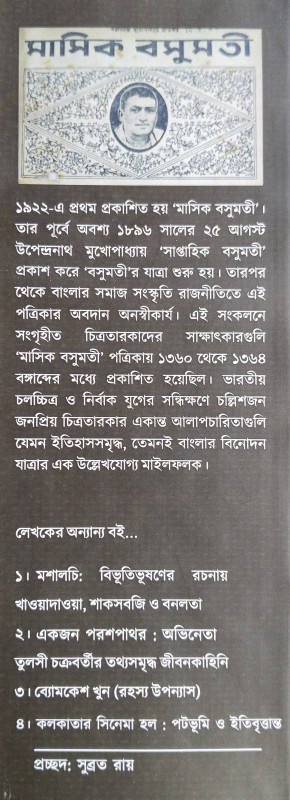 ১৯২২-এ প্রথম প্রকাশিত হয় ‘মাসিক বসুমতী’। তার পূর্বে অবশ্য ১৮৯৬ সালের ২৫ আগস্ট উপেন্দ্রনাথ মুখোপাধ্যায় ‘সাপ্তাহিক বসুমতী’ প্রকাশ করে ‘বসুমতী’র যাত্রা শুরু হয়। তারপর থেকে বাংলার সমাজ সংস্কৃতি রাজনীতিতে এই পত্রিকার অবদান অনস্বীকার্য। এই সংকলনে সংগৃহীত চিত্রতারকাদের সাক্ষাৎকারগুলি ‘মাসিক বসুমতী’ পত্রিকায় ১৩৬০ থেকে ১৩৬৪ বঙ্গাব্দের মধ্যে প্রকাশিত হয়েছিল। ভারতীয় চলচ্চিত্র ও নির্বাক যুগের সন্ধিক্ষণে চল্লিশজন জনপ্রিয় চিত্রতারকার একান্ত আলাপচারিতাগুলি যেমন ইতিহাসসমৃদ্ধ, তেমনই বাংলার বিনোদন যাত্রার এক উল্লেখযোগ্য মাইলফলক…
