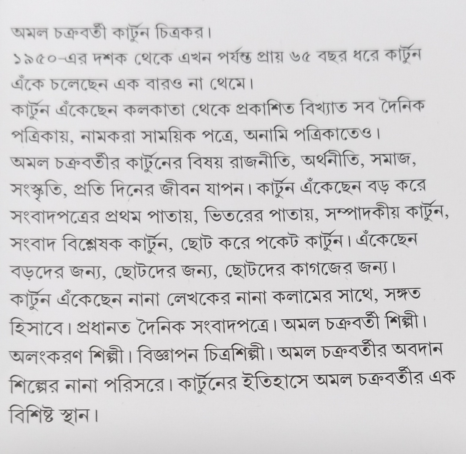 অমল চক্রবর্তীর তুলি বারংবার বিদ্ধ করেছে সমাজের অনৈতিকতাকে। ওনার কার্টুন ও আঁকাগুলিকে মলাটবন্দি করা এই বইতে।