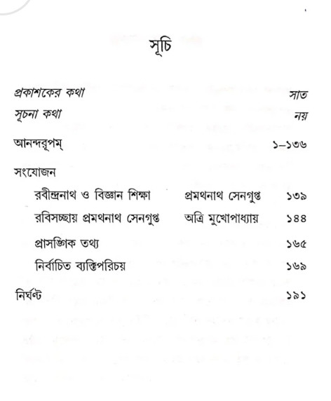 “আনন্দরূপম্” পরিচয় করিয়ে দেবে পন্ডিত মানুষ, সত্যেন্দ্রনাথ বসুর ছাত্র ও শান্তিনিকেতনের বিজ্ঞানের অধ্যাপক – প্রমথনাথ সেনগুপ্তের বিজ্ঞানভাবনার সঙ্গে। শান্তিনিকেতনে বিজ্ঞান-শিক্ষাদানের, পরিণতবয়স্ক রবীন্দ্রনাথের ল্যাবরেটরিতে বিজ্ঞান-অধ্যয়নের, এমনকী দূরবীক্ষণ সহযোগে শনিগ্রহর বলয় পর্যবেক্ষণের সুচারু বর্ণনা যা সহজে মেলে না, তা তুলে ধরা হয়েছে। এছাড়াও, রবীন্দ্রনাথের বিশ্বপরিচয় (১৯৩৭) লেখার ভার তাঁর ওপর থাকলেও, যেহেতু কাজটা রবীন্দ্রনাথ শেষ করেন ও ভাষা সংস্কার করেন, সহ-লেখক হিসেবে তাঁর নাম দেওয়া হয়নি। এই নীতি-বিরুদ্ধ কাজ নিয়ে রবীন্দ্র-অনুরাগী প্রমথনাথ নিজে কী ভাবতেন এ-বিষয়ে? তারই যথার্থ উত্তর মিলবে লেখকের আত্মস্মৃতি-কথন আনন্দরূপম্-এ।