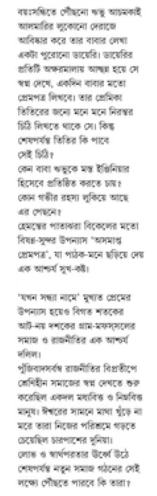 হেমন্তের পাতাঝরা বিকেলের মতো বিষন্ন-সুন্দর উপন্যাস 'অসমাপ্ত প্রেমপত্র', যা পাঠক-মনে ছড়িয়ে দেয় এক আশ্চর্য সুখ-কষ্ট।