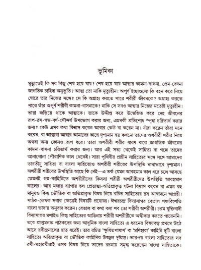 আত্মা কি কামনাবিহীন? নশ্বর নরদেহ থেকে মুক্তি লাভ করলেই কি মুছে যায় তাঁর কামনা-বাসনা-ভালোবাসা- যন্ত্রণা? রিপুর প্রভাব? নাকি আত্মার মতো রিপুরও মৃত্যু নেই? তাই তারা শরীরী মানুষের কাছে আবারও ফিরে ফিরে আসে অশরীরী শরীর নিয়ে অথবা অন্য কোনো রূপে, তাঁদের আকাঙ্ক্ষা পূরণের জন্য? কখনও ভালোবাসার আকাঙ্ক্ষায় আবার কখনও তীব্র প্রতিহিংসা পূরণের জন্য। প্রাপ্তমনস্ক পাঠক-পাঠিকাদের জন্য তেমনই অশরীরী শরীরের শিহরন জাগানো ৬টি কাহিনি অশরীরী শরীর