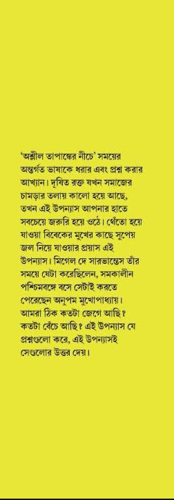'অশ্লীল তাপাঙ্কের নীচে' সময়ের অন্তর্গত ভাষাকে ধরার এবং প্রশ্ন করার আখ্যান। দূষিত রক্ত যখন সমাজের চামড়ার তলায় কালো হয়ে আছে, তখন এই উপন্যাস আপনার হাতে সবচেয়ে জরুরি হয়ে ওঠে। থেঁতো হয়ে যাওয়া বিবেকের মুখের কাছে সুপেয় জল নিয়ে যাওয়ার প্রয়াস এই উপন্যাস। মিগেল দে সারভান্তেস তাঁর সময়ে যেটা করেছিলেন, সমকালীন পশ্চিমবঙ্গে বসে সেটাই করতে পেরেছেন অনুপম মুখোপাধ্যায়। আমরা ঠিক কতটা জেগে আছি? কতটা বেঁচে আছি? এই উপন্যাস যে প্রশ্নগুলো করে, এই উপন্যাসই সেগুলোর উত্তর দেয়।