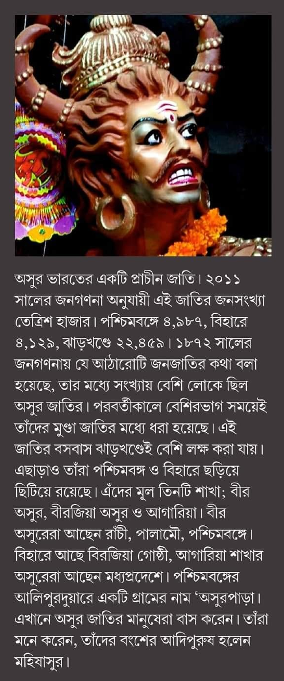 অসুর বিষয়ে আমাদের সাধারণ ধারণা সঠিক নয়। মহিষাসুরকে নিয়েও আমার জানা অনেকটাই বিভ্রান্তিতে ভরা।