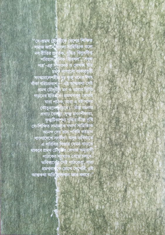 “যে-প্রমথ চৌধুরীকে দেশের শিক্ষিত সমাজ জানে, বাংলা সাহিত্যিক গদ্যে নব রীতির প্রবর্তক, বুদ্ধির বিদ্যুৎদীপ্ত পরিহাস-রসিক ‘বীরবল’, ‘সবুজ পত্র’-এর সম্পাদক ও লেখক, যাঁর চমক লাগানো বাকচাতুরী সংস্কারলেশহীন দৃঢ় ঋজু মনের ঈষৎ বাঁকা বহিঃপ্রকাশ— এই আত্মকথা সেই প্রমথ চৌধুরীর মন ও ভাষার ভিত্তি গড়নের ইতিহাস। প্রমথবাবুর লেখার যারা পাঠক, তারা এ বই সাদর কৌতূহলে পড়বে।… কিন্তু সাহিত্যিকের আত্মকথা হিসাবেই এ বইয়ের আকর্ষণ নয়। এ আত্ম-কাহিনীতে যে-সব ঘটনা ও লোকের বর্ণনা আছে তা এমন নিপুণ রেখায় আঁকা, এমন কৌতুকহাস্যে সমুজ্জল যে নিজ গুণেই তা সাহিত্য হয়ে উঠেছে।” এ কথা ভূমিকায় লিখেছিলেন অতুলচন্দ্র গুপ্ত। কিন্তু এ বই গ্রন্থাকারে প্রকাশিত হয়েছিল অনেক কাল আগে, তারও পরে লেখক বিভিন্ন পত্রে ‘আত্মকথা’র আরও কয়েকটি পর্ব লিখেছিলেন, সে সমস্তের অধিকাংশ উদ্ধার করে, একত্র করে এই সংস্করণ।
