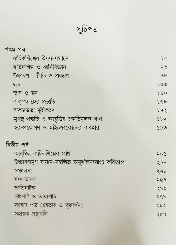 গ্রন্থটি মূলত বাচিকশিল্পের অন্তরাত্মা ও তার ভাবগত পরিসর নিয়ে রচিত। পাঠ করতে গিয়েই মনে জাগে এক গভীর বোধ—মাথার ভিতরে যেন এক অদ্ভুত সঞ্চার ঘটে। এই বোধই কবির গভীরতম সত্তার ধারক। আর বাচিকশিল্পীরা সেই বোধকে তাদের কণ্ঠমাধুর্যের বৈচিত্র্যে পৌঁছে দেন আপামর জনমানসে। বাচিকশিল্পের ক্ষেত্র বহুধাপল্লবিত হলেও আবৃত্তির সঙ্গেই তার যোগসূত্র সবচেয়ে ঘনিষ্ঠ। প্রসারিত ক্ষেত্রে নানা দৃষ্টিকোণ থেকে বাচিকশিল্পের শিল্পত্ব নিয়ে নানা মত রয়েছে। তবে সুন্দর করে গুছিয়ে কথা বলা একটা শিল্প বটেই। বাগ্মী ব্যক্তিত্বরা এখনও সমাজে বিশেষ মর্যাদা পেয়ে থাকেন। বাচিকশিল্পের পরিশীলিত বলয় সেই মর্যাদাকে আরও অনেক গুণ বাড়িয়ে দিতে পারে।