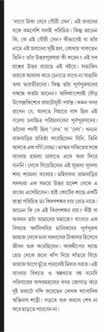 'লাগে টাকা দেবে গৌরী সেন'; এই প্রবাদের সঙ্গে কমবেশি সবাই পরিচিত। কিন্তু জানেন। কি, কে এই গৌরী সেন? কীভাবেই বা তাঁর নামে এই প্রবাদের সৃষ্টি হল, কোথায় থাকতেন তিনি। তাঁর উত্তরপুরুষরা কী করেন। এই সব প্রশ্নের উত্তর রয়েছে এই বইয়ে। সত্যজিৎ রায়কে আলাদা করে চেনাতে লাগে না বাঙালি তথা ভারতীয়দের। কিন্তু তাঁর পূর্বপুরুষদের সম্বন্ধে কতটা জানেন? অধিকাংশেরই দৌড় উপেন্দ্রকিশোর রায়চৌধুরী পর্যন্ত। কজন খবর রাখেন যে, আদতে বিহারে বাস ছিল এই বরেণ্য চলচ্চিত্র পরিচালকের পূর্বপুরুষদের। তাঁদের পদবী ছিল 'দেও' বা 'দেব'। খন্যান রাজবাড়ির প্রতিষ্ঠা করেছিলেন যিনি, তিনি আদতে এক বর্গি যোদ্ধা। ভাস্কর পণ্ডিতের সঙ্গে বাংলায় হামলা চালাতে এসে আর ফিরে যাননি। থেকে গিয়েছিলেন এই সুজলা সুফলা শস্য শ্যামলা বাংলায়। মহিষাদল রাজবাড়ির সদস্যরা এক সময়ে উত্তর প্রদেশ থেকে এ রাজ্যে এসেছিলেন। হাই কোর্টের কাছে একটি রাস্তা পরিচিত ডঃ কিরণশঙ্কর রায় রোড নামে। জানেন কি কে এই কিরণশঙ্কর রায়। কীই বা অবদান তাঁর আমাদের সমাজে? বাংলার এক বিখ্যাত স্বর্ণবিপণির মালিকদের পূর্বপুরুষ জাহাজ থেকে মাল খালাসের ঠিকাদার হিসেবে জীবন শুরু করেছিলেন। কাকদ্বীপের স্যান্ড হেড থেকে জলে ঝাঁপ দিয়ে সাঁতরে গিয়ে জাহাজ আগে ছুঁতে পারলেই মিলত বরাত। এই বাংলার বিখ্যাত ও স্বল্পখ্যাত বহু বনেদি পরিবারের অন্দরমহলের খবর জোগাড় করে দুই মলাটে বন্দি করেছেন লেখক সাংবাদিক স্বস্তিনাথ শাস্ত্রী। পড়তে শুরু করলে শেষ না করে ছাড়তে পারবেন না।
