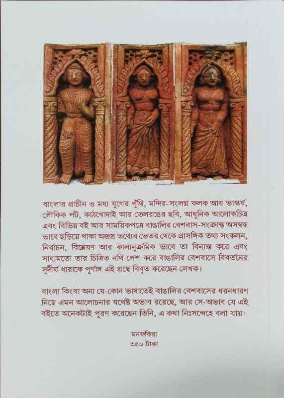 বাংলার প্রাচীন ও মধ্য যুগের পুঁথি, মন্দির-সংলগ্ন ফলক আর ভাস্কর্য, লৌকিক পট, কাঠখোদাই আর তেলরঙের ছবি, আধুনিক আলোকচিত্র এবং বিভিন্ন বই আর সাময়িকপত্রে বাঙালির বেশবাস-সংক্রান্ত অসম্বদ্ধ ভাবে ছড়িয়ে থাকা অজস্র তথ্যের ভেতর থেকে প্রাসঙ্গিক তথ্য সংকলন, নির্বাচন, বিশ্লেষণ আর কালানুক্রমিক ভাবে তা বিন্যস্ত করে এবং সাধ্যমতো তার চিত্রিত নথি পেশ করে বাঙালির বেশবাসে বিবর্তনের সুদীর্ঘ ধারাকে পূর্ণাঙ্গ এই গ্রন্থে বিবৃত করেছেন লেখক।