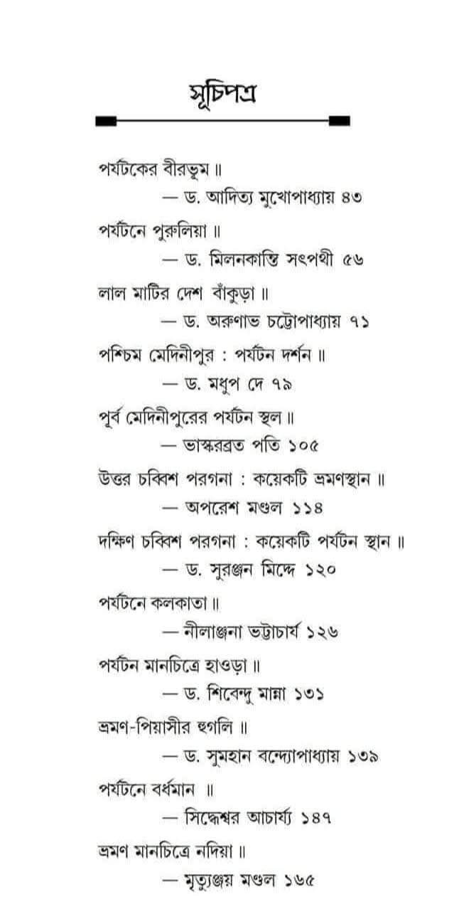 বিশিষ্ট লেখকদের কলমে ইতিহাস-পুরাতত্ত্ব-সমাজ ও সংস্কৃতির আলোকে জেলাভিত্তিক বাংলার পর্যটন কেন্দ্রগুলির বিবরণ। অসংখ্য চিত্র সম্বলিত এবং স্ব-স্ব এক্ষেত্রসমীক্ষায় সৃষ্ট এই মূল্যবান গ্রন্থটি বাংলা ভ্রমণ-সাহিত্যে একটি অভিনব সংযোজন।