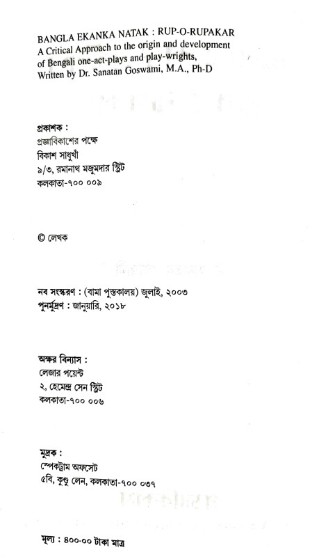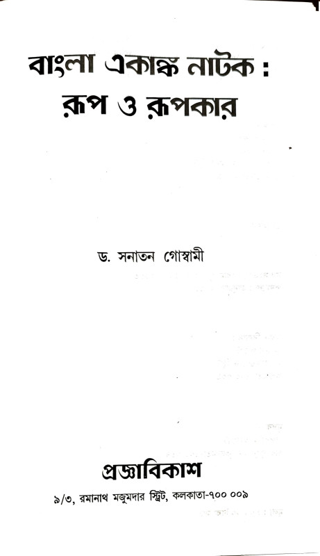বাংলা একাঙ্ক নাটক : রূপ ও রূপকার