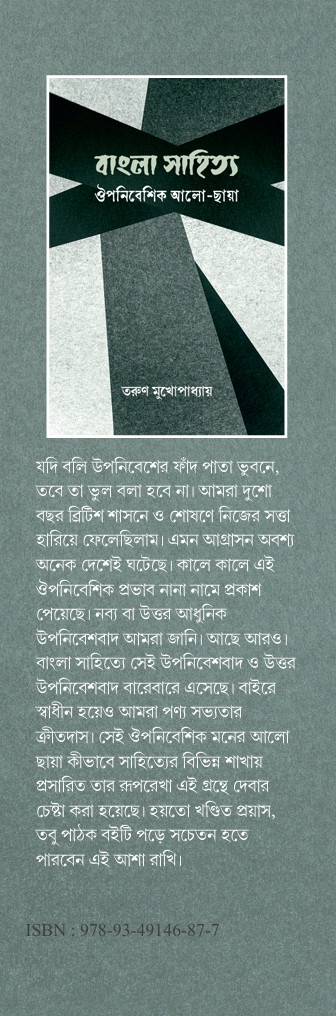 যদি বলি উপনিবেশের ফাঁদ পাতা ভুবনে, তবে তা ভুল বলা হবে না। আমরা দুশো বছর ব্রিটিশ শাসনে ও শোষণে নিজের সত্তা হারিয়ে ফেলেছিলাম। এমন আগ্রাসন অবশ্য অনেক দেশেই ঘটেছে। কালে কালে এই ঔপনিবেশিক প্রভাব নানা নামে প্রকাশ পেয়েছে। নব্য বা উত্তর আধুনিক উপনিবেশবাদ আমরা জানি। আছে আরও। বাংলা সাহিত্যে সেই উপনিবেশবাদ ও উত্তর উপনিবেশবাদ বারেবারে এসেছে। বাইরে স্বাধীন হয়েও আমরা পণ্য সভ্যতার ক্রীতদাস। সেই ঔপনিবেশিক মনের আলো ছায়া কীভাবে সাহিত্যের বিভিন্ন শাখায় প্রসারিত তার রূপরেখা এই গ্রন্থে দেবার চেষ্টা করা হয়েছে। হয়তো খণ্ডিত প্রয়াস, তবু পাঠক বইটি পড়ে সচেতন হতে পারবেন এই আশা রাখি।