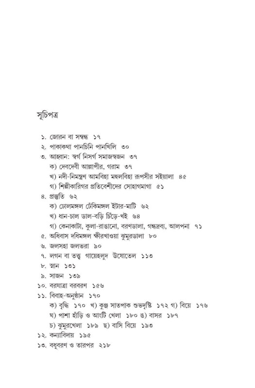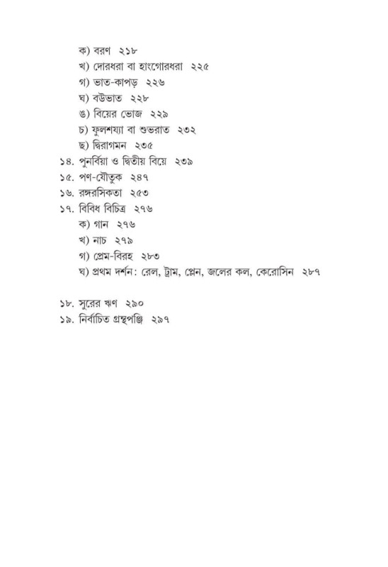 অবিভক্ত বাংলার নানা জনপদের নানা জনগোষ্ঠীর, ন-শোর বেশি বিয়ের গানে বাংলার এক অপরূপ বহুমাত্রিক রূপ। ঢোলমঙ্গল, ঢেঁকিমঙ্গল, পানখিলি, সেরামুড়ি থেকে শুরু হয়ে নদীনিমন্ত্রণ, বৃক্ষআলিঙ্গন, সমাজের সর্বস্তরের মানুষের সোহাগ নিয়ে, ‘দাসী’ নয়, ‘দোসর’ খোঁজার সুর। সাজনের গানে স্বদেশির ডাক, পাশাখেলায় টক্কর আর বিদায়ের গানে মিশে যায় দেশহারানোর কান্না। পণবিরোধী, বৈষম্যবিরোধী দৃপ্ততার পাশাপাশি, দৃষ্টিভঙ্গির বহুকৌণিকতায়, বৈচিত্র্যের বহুস্বরে, ধরা আছে— নারীমননের বহুত্বযাপন। ‘বাংলার বিয়ের গান’ আসলে এক সমাজ-দর্পণ।