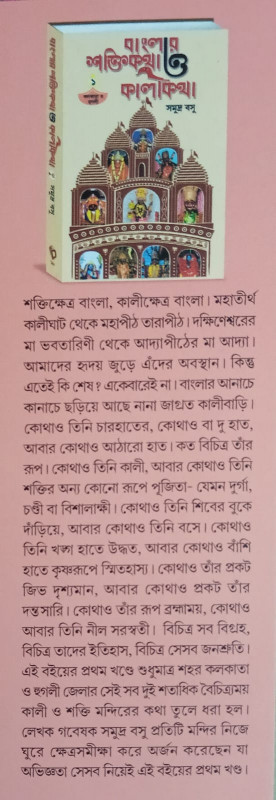 শক্তিক্ষেত্র বাংলা, কালীক্ষেত্র বাংলা। মহাতীর্থ কালীঘাট থেকে মহাপীঠ তারাপীঠ। দক্ষিণেশ্বরের মা ভবতারিণী থেকে আদ্যাপীঠের মা আদ্যা। আমাদের হৃদয় জুড়ে এঁদের অবস্থান। কিন্তু এতেই কি শেষ? একেবারেই না। বাংলার আনাচে কানাচে ছড়িয়ে আছে নানা জাগ্রত কালীবাড়ি। কোথাও তিনি চারহাতের, কোথাও বা দু হাত, আবার কোথাও আঠারো হাত। কত বিচিত্র তাঁর রূপ। কোথাও তিনি কালী, আবার কোথাও তিনি শক্তির অন্য কোনো রূপে পূজিতা- যেমন দুর্গা, চন্ডী বা বিশালাক্ষী। কোথাও তিনি শিবের বুকে দাঁড়িয়ে, আবার কোথাও তিনি বসে। কোথাও তিনি খঙ্গ হাতে উদ্ধত, আবার কোথাও বাঁশি হাতে কৃষ্ণরূপে স্মিতহাস্য। কোথাও তাঁর প্রকট জিভ দৃশ্যমান, আবার কোথাও প্রকট তাঁর দন্তসারি। কোথাও তাঁর রূপ ব্রহ্মাময়, কোথাও আবার তিনি নীল সরস্বতী। বিচিত্র সব বিগ্রহ, বিচিত্র তাদের ইতিহাস, বিচিত্র সেসব জনশ্রুতি। এই বইয়ের প্রথম খণ্ডে শুধুমাত্র শহর কলকাতা ও হুগলী জেলার সেই সব দুই শতাধিক বৈচিত্র্যময় কালী ও শক্তি মন্দিরের কথা তুলে ধরা হল। লেখক গবেষক সমুদ্র বসু প্রতিটি মন্দির নিজে ঘুরে ক্ষেত্রসমীক্ষা করে অর্জন করেছেন যা অভিজ্ঞতা সেসব নিয়েই এই বইয়ের প্রথম খণ্ড।