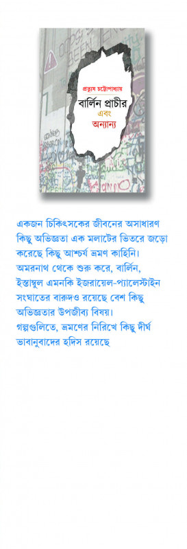 একজন চিকিৎসকের জীবনের অসাধারণ কিছু অভিজ্ঞতা এক মলাটের ভিতরে জড়ো করেছে কিছু আশ্চর্য ভ্রমণ কাহিনি। অমরনাথ থেকে শুরু করে, বার্লিন, ইস্তাম্বুল এমনকি ইজরায়েল-প্যালেস্টাইন সংঘাতের বারুদও রয়েছে বেশ কিছু অভিজ্ঞতার উপজীব্য বিষয়। গল্পগুলিতে, ভ্রমণের নিরিখে কিছু দীর্ঘ ভাবানুবাদের হদিস রয়েছে।