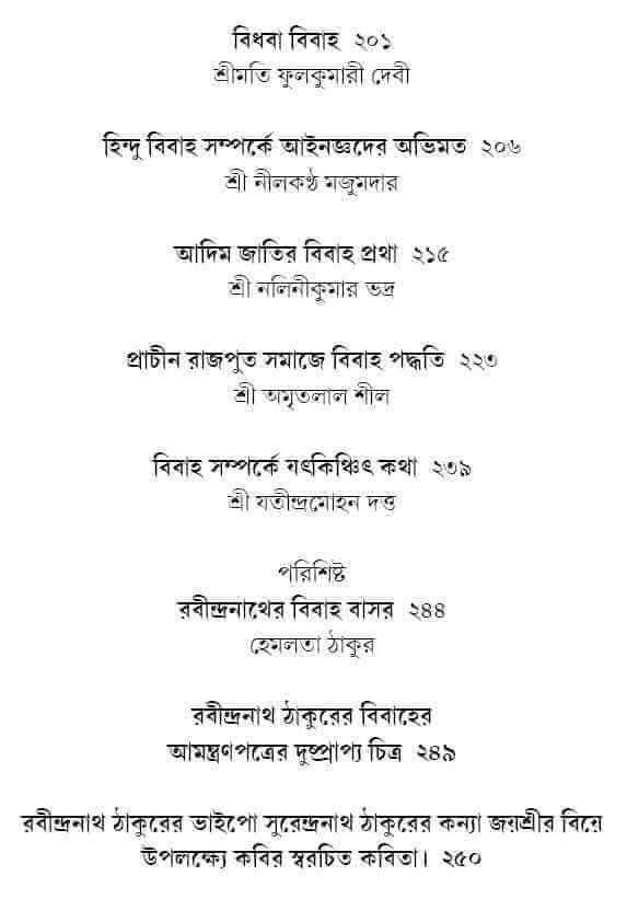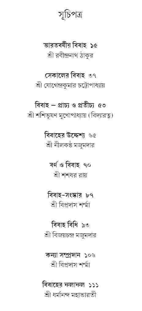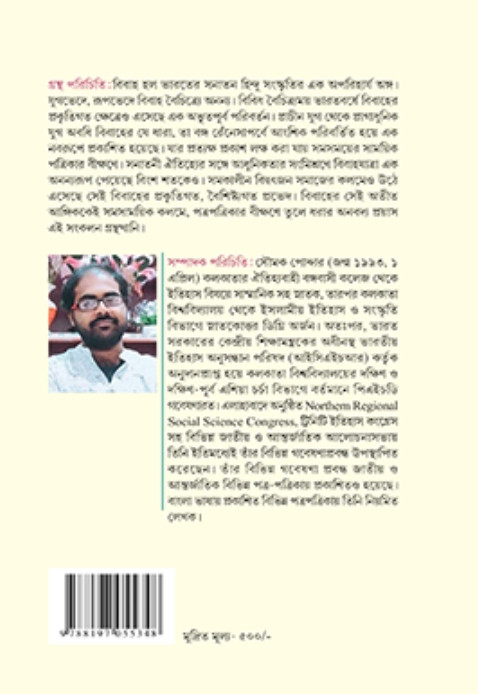 বিবাহ হল ভারতের সনাতন হিন্দু সংস্কৃতির এক অপরিহার্য অঙ্গ। যুগভেদে, রূপভেদে বিবাহ বৈচিত্র্যে অনন্য। বিবিধ বৈচিত্র্যময় ভারতবর্ষে বিবাহের প্রকৃতিগত ক্ষেত্রেও এসেছে এক অভূতপূর্ব পরিবর্তন। প্রাচীন যুগ থেকে প্রাগাধুনিক যুগ অবধি বিবাহের যে ধারা, তা বঙ্গ রেঁনেসাপর্বে আংশিক পরিবর্তিত হয়ে এক নবরূপে প্রকাশিত হয়েছে। যার প্রত্যক্ষ প্রকাশ লক্ষ করা যায় সমসময়ের সাময়িক পত্রিকার বীক্ষণে। সনাতনী ঐতিহ্যের সঙ্গে আধুনিকতার সংমিশ্রণে বিবাহযাত্রা এক অনন্যরূপ পেয়েছে বিংশ শতকেও। সমকালীন বিদ্বৎজন সমাজের কলমেও উঠে এসেছে সেই বিবাহের প্রকৃতিগত, বৈশিষ্ট্যগত প্রভেদ। বিবাহের সেই অতীত আঙ্গিককেই সমসাময়িক কলমে, পত্রপত্রিকার বীক্ষণে তুলে ধরার অনবদ্য প্রয়াস এই সংকলন গ্রন্থখানি।