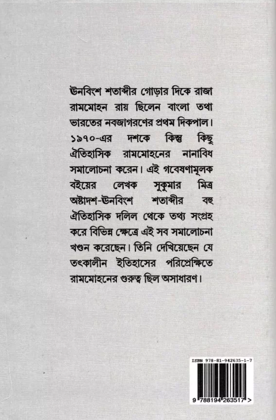 "সাম্প্রতিক কালে রামমোহন চর্চার নামে কিছু অপপ্রচারের সমালোচনা হিসাবেই বইটি লিখেছি। এতে রামমোহনের জীবনী বা কীর্তির কোন বিস্তৃত বা ধারাবাহিক বিবরণ দেওয়া হয়নি। প্রথমে যেটা লিখি সেটা একটা ছোটোখাটো প্ৰবন্ধ হয়েছিল। চেষ্টা করি সেটিকে সাহিত্য-পরিষৎ-পত্রিকায় প্রকাশ করতে— কিন্তু তাতে ব্যর্থ হই। একটু ভগ্নমনোরথ হয়ে বেশ কিছুদিন ব্যাপারটা চেপে যাই। পরে আবার নতুন করে লিখতে শুরু করি— এবং লিখতে লিখতে প্রবন্ধটি বেশ বৃহদাকার ধারণ করে। এতবড় রচনা কোন সাময়িক পত্রে প্রকাশ করার অনুপযোগী মনে করে, সেটিকে একটি গ্রন্থ আকারেই প্রকাশ করা হল। লিখতে লিখতে এবং ছাপতে ছাপতে রামমোহন সম্বন্ধে সে সব বই পড়ার সুযোগ হয়, সেগুলি যথাসম্ভব ব্যবহার করার চেষ্টা করি। তবুও অনেক তথ্যই আমার অজানা,— সেগুলি স্বভাবতই এখানে ব্যবহার বা সংযোজিত করা সম্ভব হয়নি। তার জন্য আশা করি পাঠকরা আমাকে ক্ষমা করবেন। গ্রন্থের শেষে ‘সূত্র এবং টীকা’ অংশের প্রতি পাঠকদের দৃষ্টি বিশেষভাবে আকর্ষণ করি। যথাসম্ভব, আমার বক্তব্যের সূত্রগুলির উল্লেখ সেখানে করা হয়েছে। আর, তার সঙ্গে কিছু টীকা এবং তথ্যও জুড়ে দেওয়া হয়েছে"। _সুকুমার মিত্র