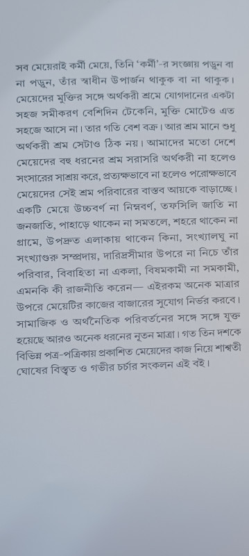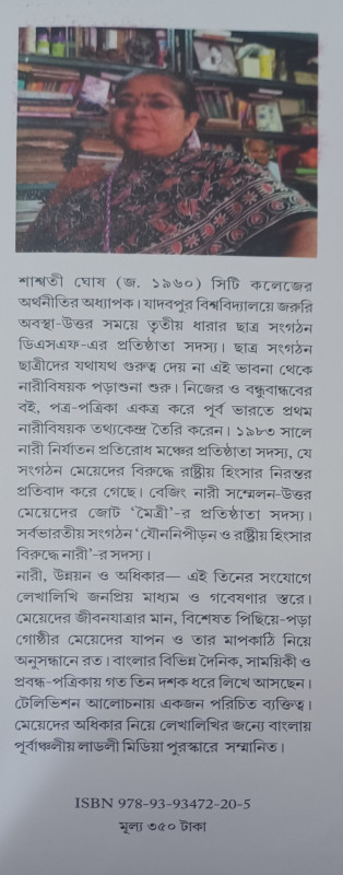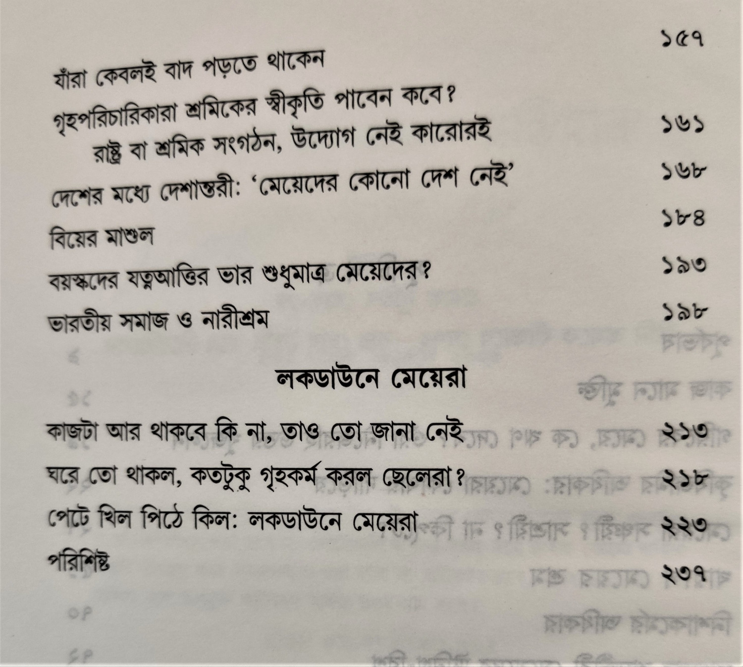 গত তিন দশকে বিভিন্ন পত্র-পত্রিকায় প্রকাশিত মেয়েদের কাজ নিয়ে শাশ্বতী ঘোষের গভীর চর্চার সংকলন এই বই।