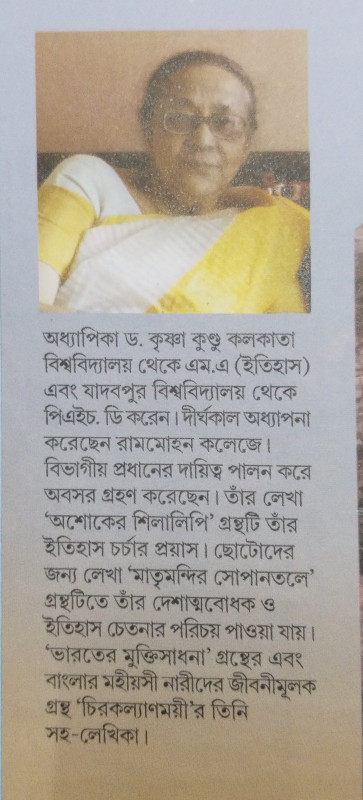 অধ্যাপিকা ড. কৃষ্ণা কুণ্ডু কলকাতা বিশ্ববিদ্যালয় থেকে এম.এ (ইতিহাস) এবং যাদবপুর বিশ্ববিদ্যালয় থেকে পিএইচ. ডি করেন। দীর্ঘকাল অধ্যাপনা করেছেন রামমোহন কলেজে।