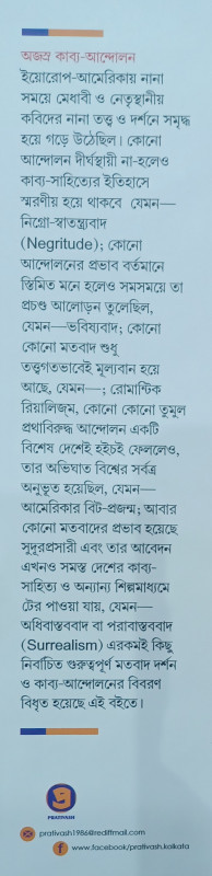 অজস্র কাব্য-আন্দোলন। ইয়োরোপ-আমেরিকায় নানা সময়ে মেধাবী ও নেতৃস্থানীয় কবিদের নানা তত্ত্ব ও দর্শনে সমৃদ্ধ হয়ে গড়ে উঠেছিল। কোনো আন্দোলন দীর্ঘস্থায়ী না-হলেও কাব্য-সাহিত্যের ইতিহাসে স্মরণীয় হয়ে থাকবে যেমন- নিগ্রো-স্বাতন্ত্র্যবাদ (Negritude); কোনো আন্দোলনের প্রভাব বর্তমানে স্তিমিত মনে হলেও সমসময়ে তা প্রচণ্ড আলোড়ন তুলেছিল, যেমন-ভবিষ্যবাদ; কোনো কোনো মতবাদ শুধু তত্ত্বগতভাবেই মূল্যবান হয়ে আছে, যেমন-; রোমান্টিক রিয়ালিজ্ম, কোনো কোনো তুমুল প্রথাবিরুদ্ধ আন্দোলন একটি বিশেষ দেশেই হইচই ফেললেও, তার অভিঘাত বিশ্বের সর্বত্র অনুভূত হয়েছিল, যেমন-আমেরিকার বিট-প্রজন্ম; আবার কোনো মতবাদের প্রভাব হয়েছে সুদূরপ্রসারী এবং তার আবেদন এখনও সমস্ত দেশের কাব্য-সাহিত্য ও অন্যান্য শিল্পমাধ্যমে টের পাওয়া যায়, যেমন- অধিবাস্তববাদ বা পরাবাস্তববাদ (Surrealism) এরকমই কিছু নিবাচিত গুরুত্বপূর্ণ মতবাদ দর্শন ও কাব্য-আন্দোলনের বিবরণ বিধৃত হয়েছে এই বইতে।