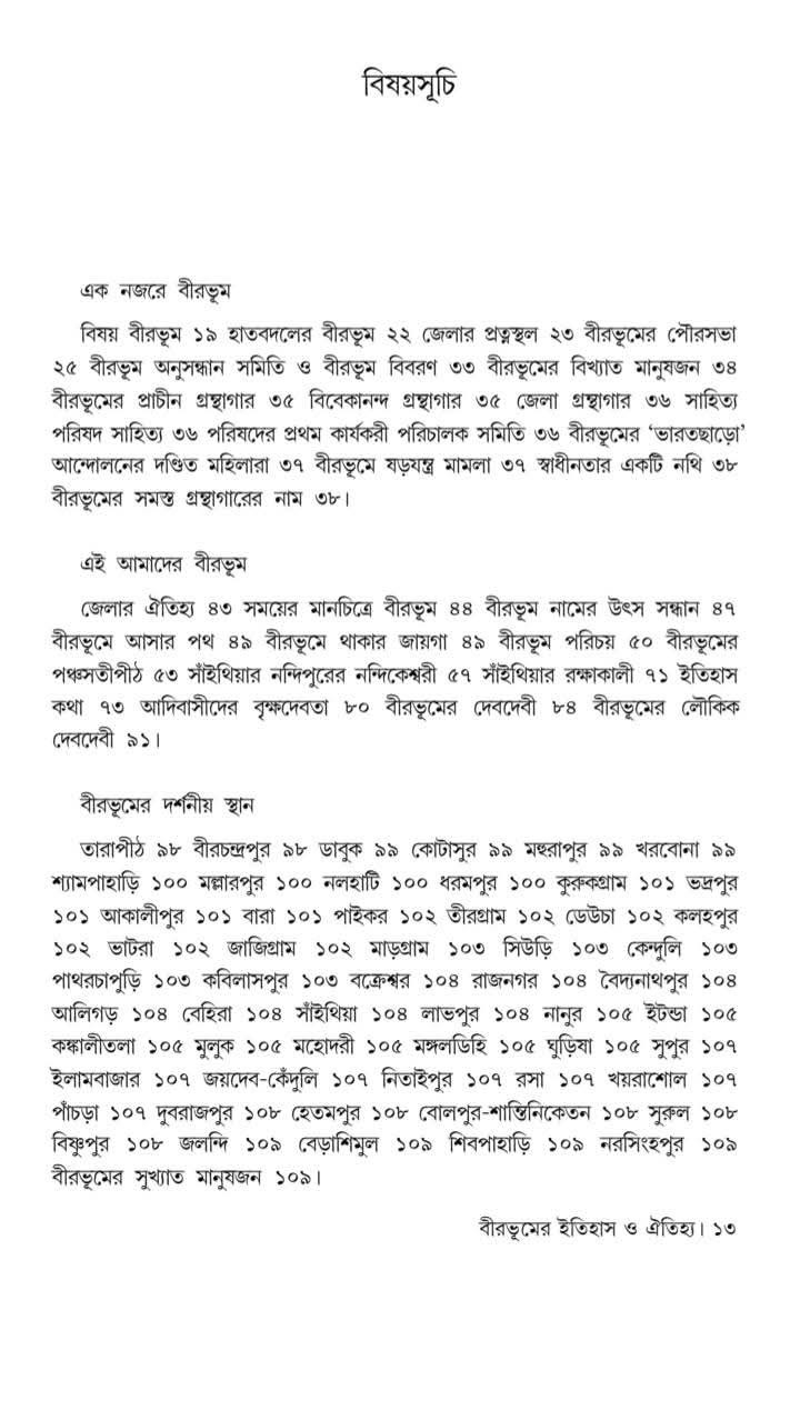 এই জেলাকে নিয়ে ড. আদিত্য মুখোপাধ্যায় চর্চা করছেন কয়েক দশক। পায়ে হেঁটে ঘুরেছেন। দেখেছেন। দেখিয়েছেন। তাঁর সুদীর্ঘ জীবনভর বীরভূম-চর্চার ফসল এই গ্রন্থ।