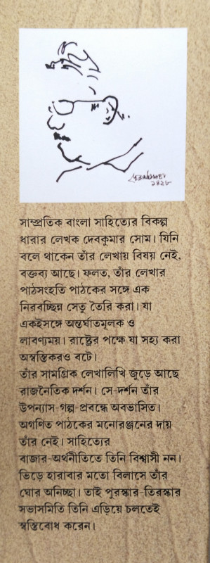 সাম্প্রতিক বাংলা সাহিত্যের বিকল্প ধারার লেখক দেবকুমার সোম। যিনি বলে থাকেন তাঁর লেখায় বিষয় নেই, বক্তব্য আছে। ফলত, তাঁর লেখার পাঠসংহতি পাঠকের সঙ্গে এক নিরবচ্ছিন্ন সেতু তৈরি করা। যা একইসঙ্গে অন্তর্ঘাতমূলক ও লাবণ্যময়। রাষ্ট্রের পক্ষে যা সহ্য করা অস্বস্তিকরও বটে।