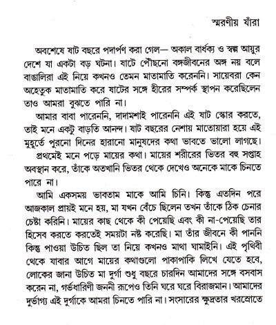 শংকর-এর নিজের কথায় "সমাজের সর্বস্তরে চরণ ছুঁয়ে যাই যে এমন বিপুল পাঠকসমর্থন পাবে তা কল্পনার মধ্যে ছিল না। একটা জিনিস স্পষ্ট হল, পৃথিবীর সমস্ত ভক্তি শ্রদ্ধা ও বিশ্বাস এখনও উন্নাসিকদের ওয়েস্ট পেপার-বাস্কেটে বিসর্জন দেওয়া হয়নি। এই বইতে আমার নিতান্ত আপনজনেরা, বিশেষকরে মা, হেডমাষ্টারমশাই ও বারওয়েল সাহেব বার বার এসে গিয়েছেন, আরও উপস্থিত হয়েছেন যেতে-যেতে-দেখা অথবা আচমকা-খুঁজেপাওয়া বন্ধুদের বিচিত্র চরিত্র। আমার প্রিয় এই কাজটা পাঠক-পাঠিকারা অগ্রাহ্য করলে খুব কষ্ট পেতাম।... স্বামী বিবেকানন্দ আমাকে যে যপমন্ত্রটি দিয়েছেন তা হলো-ইতিবাচক হও, সারাক্ষণ নেতি নেতি করে নিজেকে অজথা নিম্নগামী করো না। সেইসঙ্গে আরও যে-বাণীটি তাঁর জীবন ও সাধনা থেকে সংগ্রহ করেছি তা হলো, অনুগত হলেও সবসময় অনুসরণ করার প্রয়োজন নেই।'