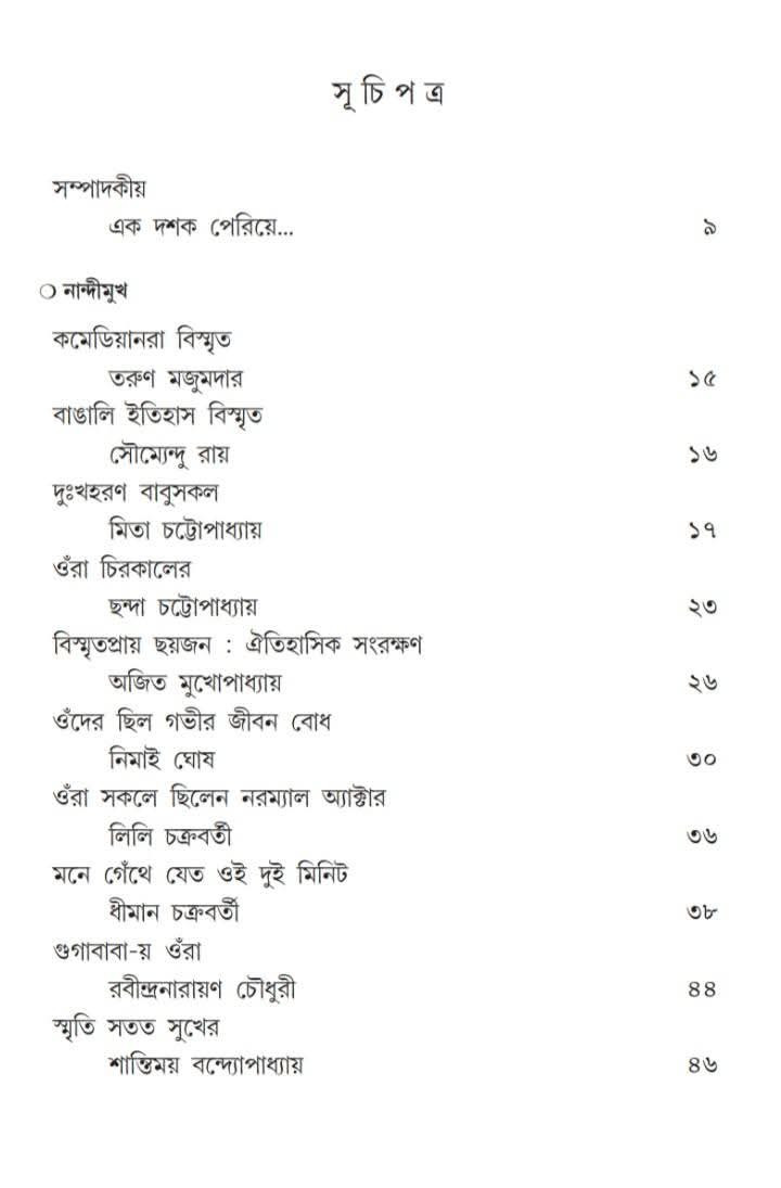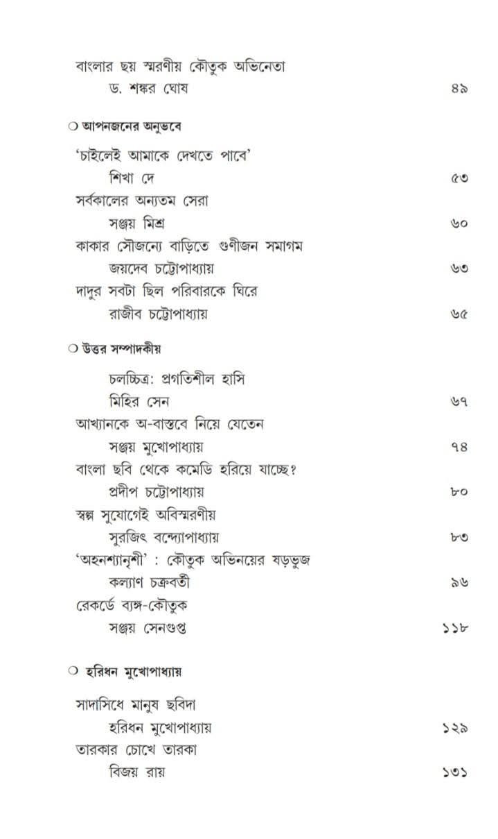 ......এবারকার 'কমেডিয়ান ছয়' সংখ্যায় সঞ্জয় মুখোপাধ্যায় লিখেছেন হাস্যকৌতুকাভিনেতাদের অবাস্তব অভিনয় নিয়ে। নির্মল, অনাবিল হাসির যে নিজস্ব জোরের জায়গা আমাদের সংস্কৃতিতে ছিল, চলচ্চিত্রে ছিল, তার স্পষ্ট রাজনৈতিক বয়ান নিয়েই, সে আলোচনা-ভাবনার সূত্র শ্রী সঞ্জয় মুখোপাধ্যায় ধরিয়ে দিয়েছেন।