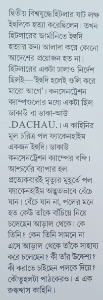 দ্বিতীয় বিশ্বযুদ্ধে হিটলার ষাট লক্ষ ইহুদিকে হত্যা করেছিলেন। তখন হিটলারের জার্মানিতে ইহুদি হত্যার জন্য আলাদা করে কোন আদেশের প্রয়োজন হত না। হিটলারের একটা ঢালাও নির্দেশ ছিলই- “ইহুদি হলেই গুলি করে মার আগে”। কোন জবাবদিহি করতে ত হবেই না। বরং ইহুদি বিনাশে অনীহা প্রকাশ করলেই জবাবদিহি করতে হতো। হিটলারের ঘোষিত দুই শত্রুর নাম – ইহুদি এবং বলশেভিক। ইহুদি নিধনের জন্য বিভিন্ন পদ্ধতি ছিল জার্মানিতে। এদের মধ্য প্রধান দুটি। এক, কনসেন্ট্রেশন ক্যাম্প যা প্রকৃতই মৃত্যু শিবির। দ্বিতীয়টি হলো গ্যাস চেম্বার অর্থাৎ বন্দিদের ঘরে বিষাক্ত গ্যাস বাইরে থেকে ঢুকিয়ে মেরে ফেলা। হিটলারের নাৎসি পুলিশ, মানে গেষ্টাপো বাহিনির নিত্যদিন অন্যান্য কাজের সংগে একটা কাজ করতে হত। খুঁজে খুঁজে দেশের বিভিন্ন প্রান্ত থেকে ইহুদিদের ধরে এনে কন্সেনট্রেশান ক্যাম্পে বন্দি করে রেখে অত্যাচার করে তিল তিল করে মেরে ফেলা। বন্দির সংখ্যা বেশী হলে গ্যাস চেম্বারে ঢুকিয়ে মেরে ফেলা। এতে একদিনে প্রচুর মেরে ফেলা যেত। এ ছাড়া তৃতীয়টি হল ফায়ারিং স্কোয়াড। লাইন দিয়ে দাঁড় করিয়ে গুলি করা। কন্সেন্ট্রেশান ক্যাম্পগুলোর মধ্যে একটা ছিল ডাকাউ বা ডাকা-আউ ( DACHAU)।