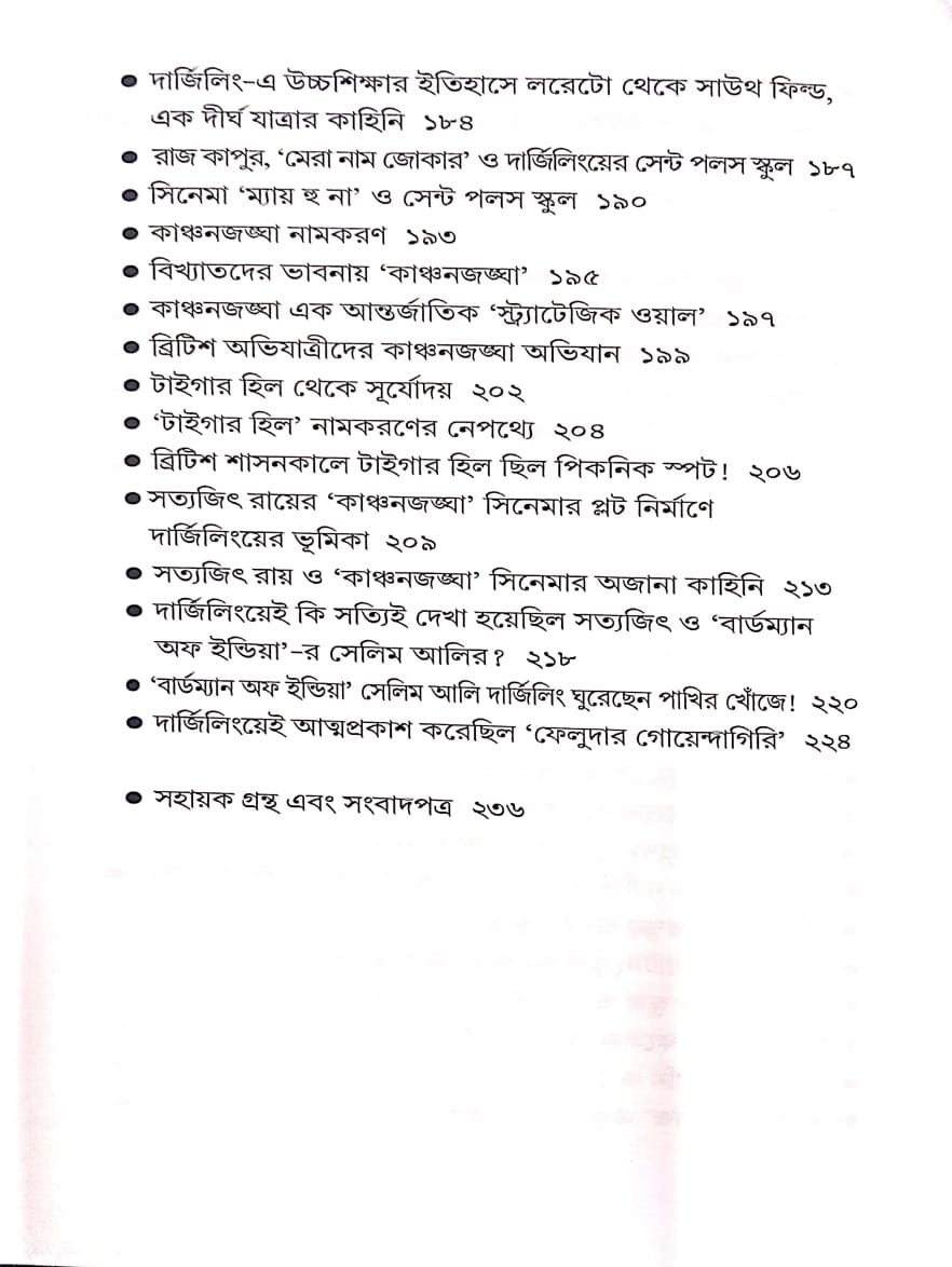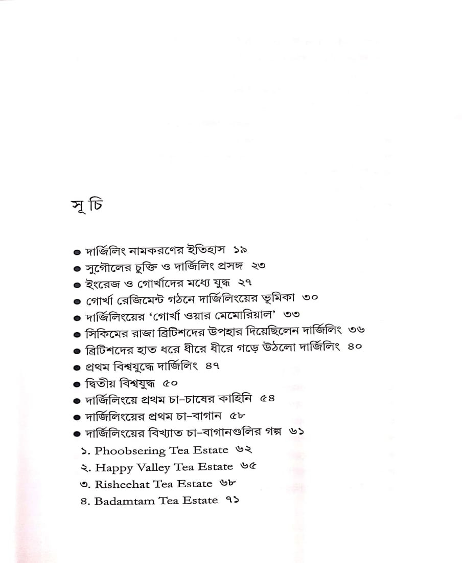 দার্জিলিং- যেখানে পাহাড়‚ ইতিহাস আর স্বপ্ন মিলিত হয়। বিশ্বের অন্যতম সেরা ‘দার্জিলিং টি’ এখানকার গর্ব। রয়েছে শতাব্দপ্রাচীন ‘টয় ট্রেন’। সত্যজিৎ রায়ের ‘কাঞ্চনজঙ্ঘা’ থেকে ‘ফেলুদার গোয়েন্দাগিরি’-সবেতেই দার্জিলিং। ‘মেরে সপনো কি রানি’ গান থেকে রাজ কাপুরের ‘মেরা নাম জোকার’ কিংবা শাহরুখের ‘ম্যায় হু না’ সিনেমায় ঘুরেফিরে এসেছে দার্জিলিং। লেখকের দীর্ঘ গবেষণা ও অভিজ্ঞতায় ফুটে উঠেছে এক অন্য দার্জিলিং-এর ছবি।