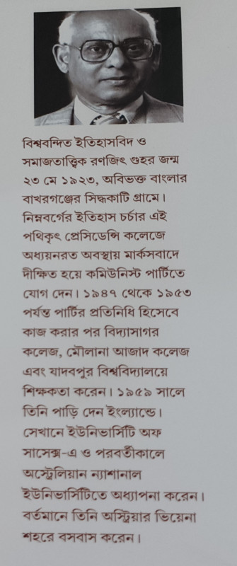 বিশ্ববন্দিত ইতিহাসবিদ ও সমাজতাত্ত্বিক রণজিৎ গুহর জন্ম ২৩ মে ১৯২৩, অবিভক্ত বাংলার বাখরগঞ্জের সিদ্ধকাটি গ্রামে। নিম্নবর্গের ইতিহাস চর্চার এই পথিকৃৎ প্রেসিডেন্সি কলেজে অধ্যয়নরত অবস্থায় মার্কসবাদে দীক্ষিত হয়ে কমিউনিস্ট পার্টিতে যোগ দেন। ১৯৪৭ থেকে ১৯৫৩ পর্যন্ত পার্টির প্রতিনিধি হিসেবে কাজ করার পর বিদ্যাসাগর কলেজ, মৌলানা আজাদ কলেজ এবং যাদবপুর বিশ্ববিদ্যালয়ে শিক্ষকতা করেন। ১৯৫৯ সালে তিনি পাড়ি দেন ইংল্যান্ডে। সেখানে ইউনিভার্সিটি অফ সাসেক্স-এ ও পরবর্তীকালে অস্ট্রেলিয়ান ন্যাশানাল ইউনিভার্সিটিতে অধ্যাপনা করেন। বর্তমানে তিনি অস্ট্রিয়ার ভিয়েনা শহরে বসবাস করেন।