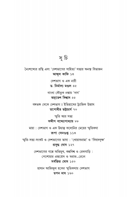 দেশভাগ...একটা নির্দিষ্ট দিনে তো কেবল মেনে নেওয়া হয়েছে রাষ্ট্রের খাতায় কলমে, তার কতদিন আগে যে আসলে ঘটে গেছে ভাগ, ভাগাভাগি, কতদিন আগে যে ক্ষতচিহ্ণে সাজিয়ে নেওয়া হয়েছে আলাদা বসত তার হিসেব কে জানে? কিংবা ওই দিনটিতেই কি শেষ হয়ে গেছে পাকাপাকি সীমানা স্থির করার কাজ? মাটি ও মানচিত্রের দাগ মনে কি জুড়ল? সব কাটাকুটি করে পাওয়া গেল নিরাপদ ভাগশেষ? ‘দেশ’-এর ধারণা বৌদ্ধিক ও রাজনৈতিক স্তরে পালটে গেছে বারবার, রোজদিন সে ধারণা কাজেও লাগে না, শুধু নিশ্চিত রয়ে গেছে, বারবার রয়ে যায়, প্রকাণ্ড ‘ভাগ’ চিহ্ণ৷ স্মৃতিতে, এবং ফলত সত্তায়, বিঁধে থাকে৷ ‘দেশ’ কাকে বলে, ঠিক কত বড়ো তা, কেমন আকার যিনি জানেননি, তাঁরও চৈতন্যে নড়াচড়া করে ভাগের, ছেদের দাগ৷ কী আশ্চর্য, সাধারণভাবে ভাগ-এর পূর্বশর্ত যে বস্তুর/বিষয়ের ঠিকানা, ভাগ হতে গেলে কিছু তো চাই--- বাড়ি, খাবার বা দেশের মতো কিছু সেই পূর্বশর্তও এই নতুন ভাগের চেতনায় দরকার নেই৷ কী যে ভাগ হয়েছে না জেনেও কেমন টের পাওয়া যাচ্ছে ভাগ হয়ে গেছে, আমিও বিভক্ত, স্মৃতি-সত্তা-চেতনায় আমিই খণ্ড খণ্ড, আলাদা, পরিত্যক্ত, ঘাড় ধাক্কা খাওয়া লোক, ক্রুদ্ধ হয়ে উঠতেও যার ভয় হয়৷ দেশভাগ আমাদের এক অনন্ত বিভক্তিচিহ্ণ৷ আমাদের অস্তিত্বের মাঝ বরাবর চলে যাওয়া রেখা৷ কেন এবং কীভাবে যে ঘটে গেছে টের পেতে কোনো ভুল হয় না৷ কোনো এক অতীতে লুকোনো আছে এই যন্ত্রণার উৎসবিন্দু তা বেশ জানি৷ ভুলে থাকি---জ্ঞাতসারে বা অজ্ঞাতে---সেই ইতিহাস৷