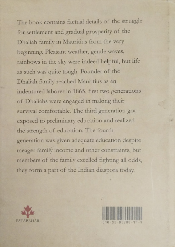 The book contains factual details of the struggle for settlement and gradual prosperity of the Dhaliah family in Mauritius from the very beginning. Pleasant weather, gentle waves, rainbows in the sky were indeed helpful, but life as such was quite tough. Founder of the Dhaliah family reached Mauritius as an indentured laborer in 1865, first two generations of Dhaliahs were engaged in making their survival comfortable. The third generation got exposed to preliminary education and realized the strength of education. The fourth generation was given adequate education despite meager family income and other constraints, but members of the family excelled fighting all odds, they form a part of the Indian diaspora today.