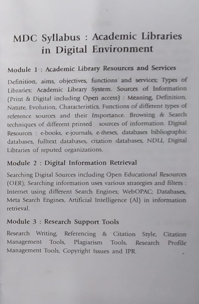 NEP: 2020 Multidisciplinary Courses (MDC) For UG Programme