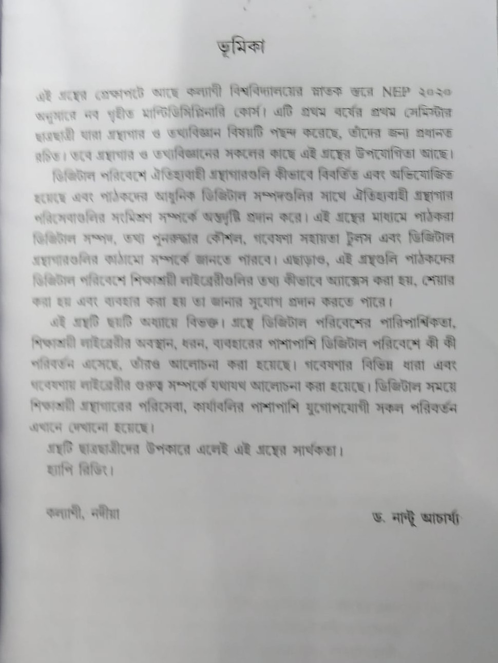 এই গ্রহের প্রেক্ষাপটে আছে কল্যাণী বিশ্ববিদ্যালয়ের স্নাতক স্তরে NEP ২০২০ অনুসারে নব গৃহীত মাল্টিডিসিপ্লিনারি কোর্স। এটি প্রথম বর্ষের প্রথম সেমিস্টার ছাত্রছাত্রী খারা গ্রন্থাগার ও তথ্যবিজ্ঞান বিষয়টি পছন্দ করেছে, তাঁদের জন্য প্রধানত রচিত। তবে গ্রন্থাগার ও তথ্যবিজ্ঞানের সকলের কাছে এই গ্রন্থের উপযোগিতা আছে।