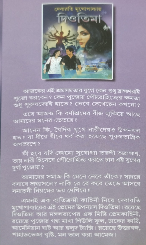 অব্রাহ্মণ ও নারী হয়েও দুর্গাপুজোয় পৌরোহিত্য করার প্রেক্ষাপটে এক অনবদ্য মিষ্টি প্রেমের বেস্টসেলার উপন্যাস দেবারতি মুখোপাধ্যায়ের দিওতিমা ।