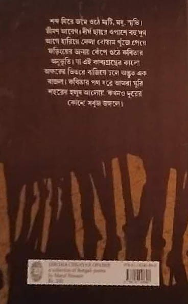 শব্দ ঘিরে জমে ওঠে মাটি, মধু, স্মৃতি। ভীষণ আবেগ। দীর্ঘ ছায়ার ওপাশে বহু যুগ আগে হারিয়ে ফেলা বোতাম খুঁজে পেয়ে ফড়িংয়ের ডানায় কেঁপে ওঠে কবিতার অনুভূতি। যা এই কাব্যগ্রন্থের কালো অক্ষরের ভিতরে বাজিয়ে চলে অদ্ভুত এক বাজনা। কবিতার পথ ধরে আমরা ঘুরি শহরের হলুদ আলোয়, কখনও দূরের কোনো সবুজ জঙ্গলে।