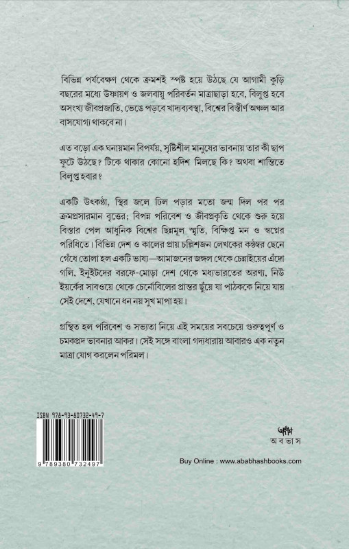 গ্রন্থিত হল পরিবেশ ও সভ্যতা নিয়ে এই সময়ের সবচেয়ে গুরুত্বপূর্ণ ও চমকপ্রদ ভাবনার আকর। সেই সঙ্গে বাংলা গদ্যধারায় আবারও এক নতুন মাত্রা যোগ করলেন পরিমল।