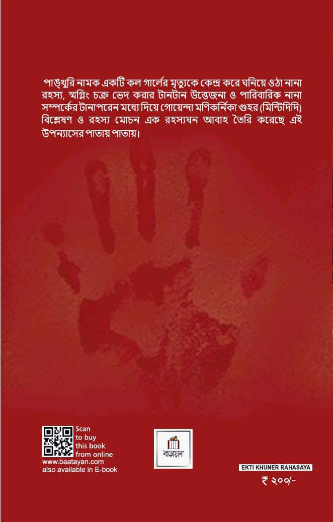 পাঙ্গুরি নামক একটি কল গার্লের মৃত্যুকে কেন্দ্র করে ঘনিয়ে ওঠা নানা রহস্য, স্মগ্লিং চক্র ভেদ করার টানটান উত্তেজনা ও পারিবারিক নানা সম্পর্কের টানাপরেন মধ্যে দিয়ে গোয়েন্দা মণিকর্নিকা গুহর (মিন্টিদিদি) বিশ্লেষণ ও রহস্য মোচন এক রহস্যঘন আবাহ তৈরি করেছে এই উপন্যাসের পাতায় পাতায়।