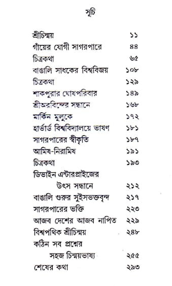 "সেই উনিশ শতকে শ্রীরামকৃষ্ণ-শিষ্য স্বামী বিবেকানন্দ থেকে শুরু করে বাংলার মহাযোগীরা স্বদেশের সীমানা পেরিয়ে সুদূর আমেরিকায় শাশ্বত ভারতের অধ্যাত্মিক বাণী প্রচার করে বিশ্বজনের বিশ্বাস, স্বীকৃতি ও ভালবাসা অর্জন করে চলেছেন। এই অবিশ্বাস্য ধারাবাহিকতার সাম্প্রতিকতম প্রান্তে দাঁড়িয়ে আছেন বিস্ময়-সাধক শ্রীচিন্ময়। চট্টগ্রামের অজ পাড়াগাঁয়ে জন্মিয়ে নিতান্ত বাল্যবয়সে তিনি শ্রীঅরবিন্দর পন্ডিচেরি আশ্রমে হাজির হয়েছিলেন এবং পরবর্তী কোনো সময়ে অন্তরের আকস্মিক নির্দেশে কপর্দকহীন অবস্থায় সপ্তসাগর পেরিয়ে সুদূর আমেরিকায় উপস্থিত হন। সেখানেই বিস্ময়কর সাধনা ও তার তুলনাহীন স্বীকৃতি যা ক্রমশ ছড়িয়ে পড়েছে পৃথিবীর দিকে দিকে। নিউইয়র্কে তাঁর নামে রাস্তা, জাঞ্জিবারে ডাকটিকিট, রাষ্ট্রসংঘে স্থায়ী প্রার্থনাকক্ষ, নরওয়ে অসলোতে পূর্ণাবয়ব মূর্তি। প্রিন্সেস ডায়ানা ছিলেন তাঁর ভক্ত, গর্বাচভ বন্ধু, নোবেল পুরস্কারের (শান্তি) জন্যও তাঁর নাম উঠেছিল। অথচ যা আশ্চর্য, সাগরপারের এই অভূতপূর্ব সাফল্যের সংবাদ আজও সাধকের জন্মভূমি এই ভারত উপমহাদেশে সম্পূর্ণ উপস্থিত হয়নি। বাঙালিরা আজও তাঁকে তেমনভাবে চেনেন না।"