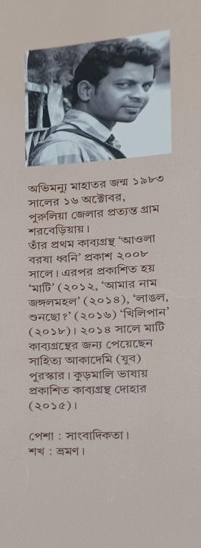 লেখক পরিচিতি : অভিমন্যু মাহাতর জন্ম ১৯৮৩ সালের ১৬ অক্টোবর, পুরুলিয়া জেলার প্রত্যন্ত গ্রাম শরবেড়িয়ায়।
