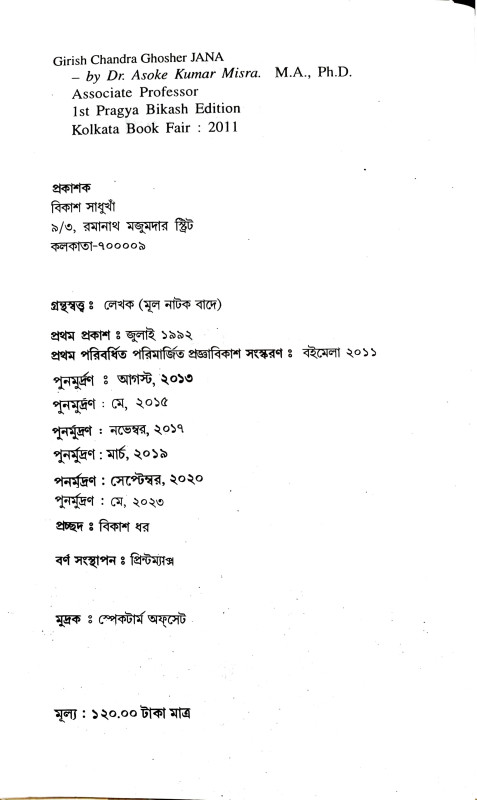 সম্পাদনা : ড. অশোককুমার মিশ্র