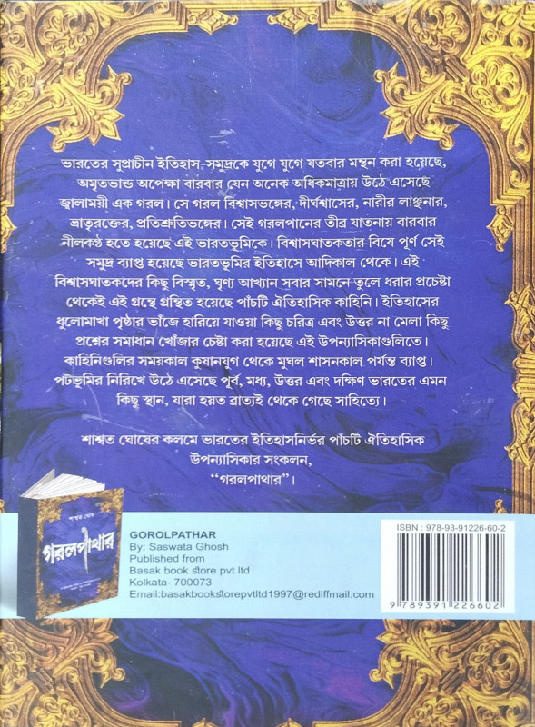 ‛বিশ্বাস’! মাত্র একটি শব্দের কী অপরিসীম ক্ষমতা ইতিহাসের কালচক্রকে আবর্তিত করার! যুগে যুগে এই শব্দ ব্যবহৃত হয়েছে তার অসীম মোহজালে মহাকালের নাট্যমঞ্চের কুশীলবদের প্রভাবিত করতে। আর সেই বিশ্বাস যখন হয়েছে ভগ্ন, তখন ইতিহাসের পাতায় ঘটেছে পট-পরিবর্তন। যে চরিত্ররা হয়ত হয়ে উঠতে পারতো কালজয়ী, বিবর্ণ ধূলিধূসর পাতার ভাঁজে হারিয়ে গেছে তারাই। আর্যাবর্তের ইতিহাসের এমনই পাঁচটি ঘৃণ্য অথচ বিস্মৃত বিশ্বাসহননের কাহিনী নিয়ে প্রখ্যাত লেখক শাশ্বত ঘোষের কলমে পাঁচটি ঐতিহাসিক উপন্যাসিকার সংকলন – “গরলপাথার”।
