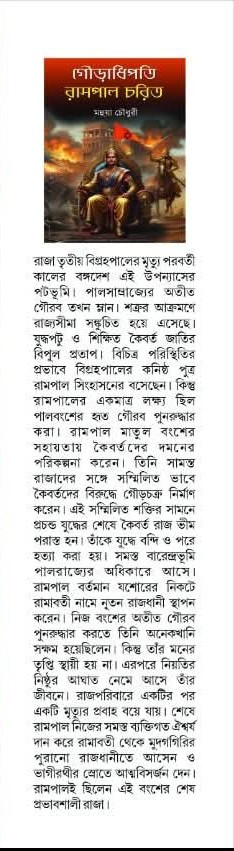 রাজ্য তৃতীয় বিগ্রহপালের মৃত্যু পরবর্তী কালের বঙ্গদেশ এই উপন্যাসের পটভূমি। পালসাম্রাজ্যের অতীত গৌরব তখন ম্লান। শত্রুর আক্রমণে রাজ্যসীমা সঙ্কুচিত হয়ে এসেছে। যুদ্ধপটু ও শিক্ষিত কৈবর্ত জাতির বিপুল প্রতাপ। বিচিত্র পরিস্থিতির প্রভাবে বিগ্রহপালের কনিষ্ঠ পুত্র রামপাল সিংহাসনের বসেছেন। কিন্তু রামপালের একমাত্র লক্ষ্য ছিল পালবংশের হৃত গৌরব পুনরুদ্ধার করা। রামপাল মাতুল বংশের সহায়তায় কৈবর্তদের দমনের পরিকল্পনা করেন। তিনি সামন্ত রাজাদের সঙ্গে সম্মিলিত ভাবে কৈবর্তদের বিরুদ্ধে গৌড়চক্র নির্মাণ করেন। এই সম্মিলিত শক্তির সামনে প্রচণ্ড যুদ্ধের শেষে কৈবর্ত রাজ ভীম পরাস্ত হন। তাঁকে যুদ্ধে বন্দি ও পরে হত্যা করা হয়। সমস্ত বারেন্দ্রভূমি পালরাজ্যের অধিকারে আসে। রামপাল বর্তমান যশোরের নিকটে রামাবতী নামে নূতন রাজধানী স্থাপন করেন। নিজ বংশের অতীত গৌরব পুনরুদ্ধার করতে তিনি অনেকখানি সক্ষম হয়েছিলেন। কিন্তু তাঁর মনের তৃপ্তি স্থায়ী হয় না। এরপরে নিয়তির নিষ্ঠুর আঘাত নেমে আসে তাঁর জীবনে। রাজপরিবারে একটির পর একটি মৃত্যুর প্রবাহ বয়ে যায়। শেষে রামপাল নিজের সমস্ত ব্যক্তিগত ঐশ্বর্য দান করে রামাবতী থেকে মুদগগিরির পুরানো রাজধানীতে আসেন ও ভাগীরথীর স্রোতে আত্মবিসর্জন দেন। রামপালই ছিলেন এই বংশের শেষ প্রভাবশালী রাজা।