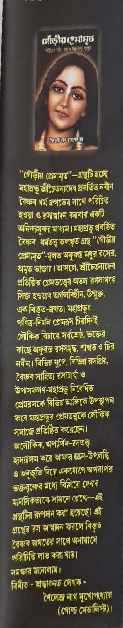 '"গৌড়ীয় প্রেমামৃত"-গ্রন্থটি হচ্ছে মহাপ্রভু শ্রীচৈতন্যদেব প্রবর্তিত নবীন বৈষ্ণব ধর্ম জগতের সাথে পরিচিত হওয়া ও রসাস্বাদন করবার একটি অনিন্দ্যসুন্দর মাধ্যম। মহাপ্রভু প্রবর্তিত বৈষ্ণব ধর্মতত্ত্ব অলঙ্কৃত গ্রন্থ "গৌড়ীয় প্রেমামৃত"-মূলত অফুরন্ত মধুর রসের, অমৃত ভান্ডার। আসলে, শ্রীচৈতন্যদেব প্রতিষ্ঠিত প্রেমতত্ত্বের অতল রসসাগরে সিক্ত হওয়ার অর্গলবিহীন, উন্মুক্ত, এক বিস্তৃত-জগত। মহাপ্রভুর পবিত্র-নির্মল প্রেমরস চিরদিনই লৌকিক বিচারে সর্বশ্রেষ্ঠ, ভক্তের কাছে অফুরন্ত রসসমৃদ্ধ, শাশ্বত ও চির নবীন। বিভিন্ন যুগে, বিভিন্ন রসপ্রিয়, বৈষ্ণব সাহিত্য রসাচার্য্য ও উপাসকগণ-মহাপ্রভু নিবেদিত প্রেমরসকে বিভিন্ন আঙ্গিকে উপস্থাপন করে মহাপ্রভুর প্রেমতত্ত্বকে লৌকিক সমাজে প্রতিষ্ঠিত করেছেন। অলৌকিক, অপার্থিব-রসতত্ত্ব হৃদয়াঙ্গম করে আমার জ্ঞান-উপলব্ধি ও অনুভূতি দিয়ে একযোগে অপরাপর ভক্তবৃন্দের মধ্যে বিলিয়ে দেবার মানসিকতাকে সামনে রেখে-এই গ্রন্থটির রূপদান করা হয়েছে। এই গ্রন্থের রস আস্বাদন করলে বিস্তৃত বৈষ্ণব জগতের সাথে অনায়াসে পরিচিতি লাভ করা যায়।'