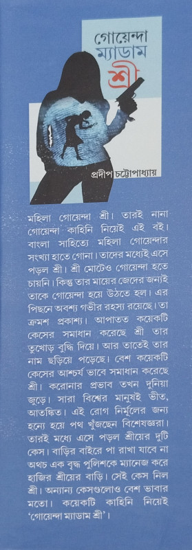 মহিলা গোয়েন্দা শ্রী। তারই নানা গোয়েন্দা কাহিনি নিয়েই এই বই। বাংলা সাহিত্যে মহিলা গোয়েন্দার সংখ্যা হাতে গোনা। তাদের মধ্যেই এসে পড়ল শ্রী। শ্রী মোটেও গোয়েন্দা হতে চায়নি। কিন্তু তার মায়ের জেদের জন্যই তাকে গোয়েন্দা হয়ে উঠতে হল। এর পিছনে অবশ্য গভীর রহস্য রয়েছে। তা ক্রমশ প্রকাশ্য। আপাতত কয়েকটি কেসের সমাধান করেছে শ্রী তার তুখোড় বুদ্ধি দিয়ে। আর তাতেই তার নাম ছড়িয়ে পড়েছে। বেশ কয়েকটি কেসের আশ্চর্য ভাবে সমাধান করেছে শ্রী। করোনার প্রভাব তখন দুনিয়া জুড়ে। সারা বিশ্বের মানুষই ভীত, আতঙ্কিত। এই রোগ নির্মূলের জন্য হন্যে হয়ে পথ খুঁজছেন বিশেষজ্ঞরা। তারই মধ্যে এসে পড়ল শ্রীয়ের দুটি কেস। বাড়ির বাইরে পা রাখা যাবে না অথচ এক বৃদ্ধ পুলিশকে ম্যানেজ করে হাজির শ্রীয়ের বাড়ি। সেই কেস নিল শ্রী। অন্যান্য কেসগুলোও বেশ ভাবার মতো। কয়েকটি কাহিনি নিয়েই 'গোয়েন্দা ম্যাডাম শ্রী'।