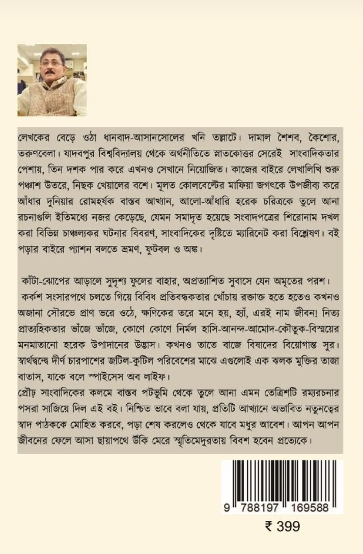 কাঁটা-ঝোপের আড়ালে সুদৃশ্য ফুলের বাহার, অপ্রত্যাশিত সুবাসে যেন অমৃতের পরশ। কর্কশ সংসারপথে চলতে গিয়ে বিবিধ প্রতিবন্ধকতার খোঁচায় রক্তাক্ত হতে হতেও কখনও অজানা সৌরভে প্রাণ ভরে ওঠে, ক্ষণিকের তরে মনে হয়, হ্যাঁ, এরই নাম জীবন! নিত্য প্রাত্যহিকতার ভাঁজে ভাঁজে, কোণে কোণে নির্মল হাসি-আনন্দ-আমোদ-কৌতুক-বিস্ময়ের মনমাতানো হরেক উপাদানের উদ্ভাস। কখনও তাতে বাজে বিষাদের বিয়োগান্ত সুর। স্বার্থদ্বন্দ্বে দীর্ণ চারপাশের জটিল-কুটিল পরিবেশের মাঝে এগুলোই এক ঝলক মুক্তির তাজা বাতাস, যাকে বলে স্পাইসেস অব লাইফ।