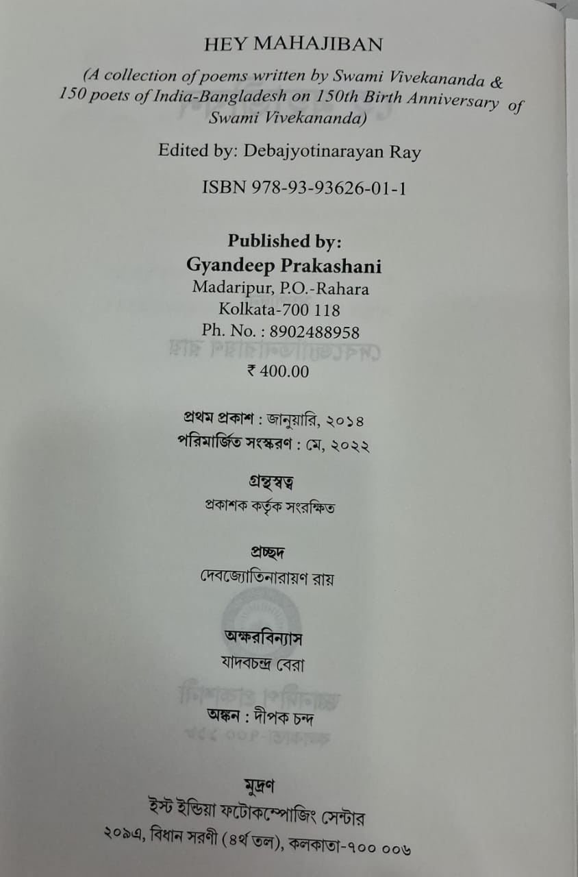 (স্বামী বিবেকানন্দের আবির্ভাবের ১৫০ তম বর্ষে স্বামী বিবেকানন্দ রচিত কবিতা ও ভারত-বাংলাদেশের ১৫০ জন কবির কবিতার্ঘ্য)